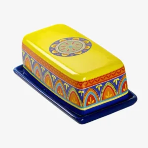 Ajoutez une touche d’élégance à votre cuisine avec ce beurrier en céramique vintage. Sa forme rectangulaire et ses motifs géométriques raffinés attirent le regard, tout en préservant la fraîcheur de votre beurre. Conçu en céramique authentique, il allie solidité et esthétisme pour enrichir vos repas d’une note décorative et pratique.