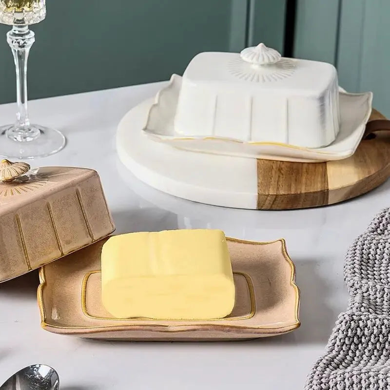 Beurrier Coquillage en céramique: un design élégant pour vos repas quotidiens.