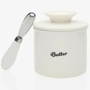Le beurrier Frigo vous garantit un beurre prêt à tartiner à tout moment. Ce modèle en céramique, au design élégant et pratique, préserve votre beurre frais jusqu’à 10 jours, même hors du réfrigérateur. Son système de beurrier à eau protège le beurre des impuretés, préservant ainsi toute sa saveur. Livré avec un couteau à beurre pour faciliter son utilisation.