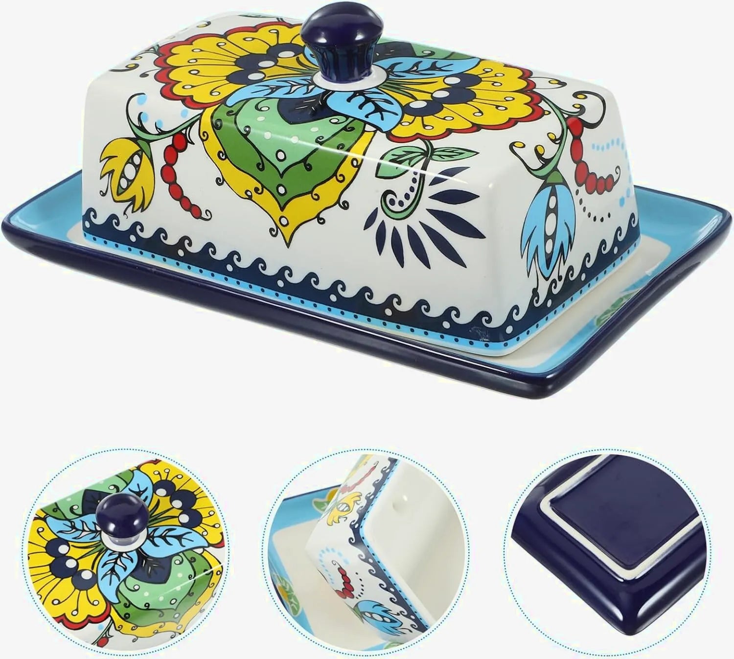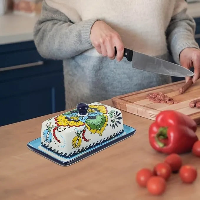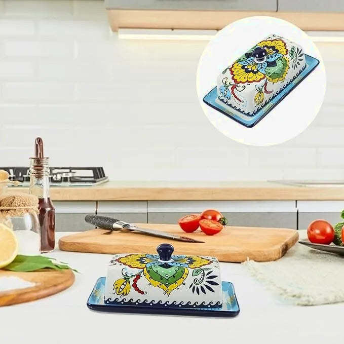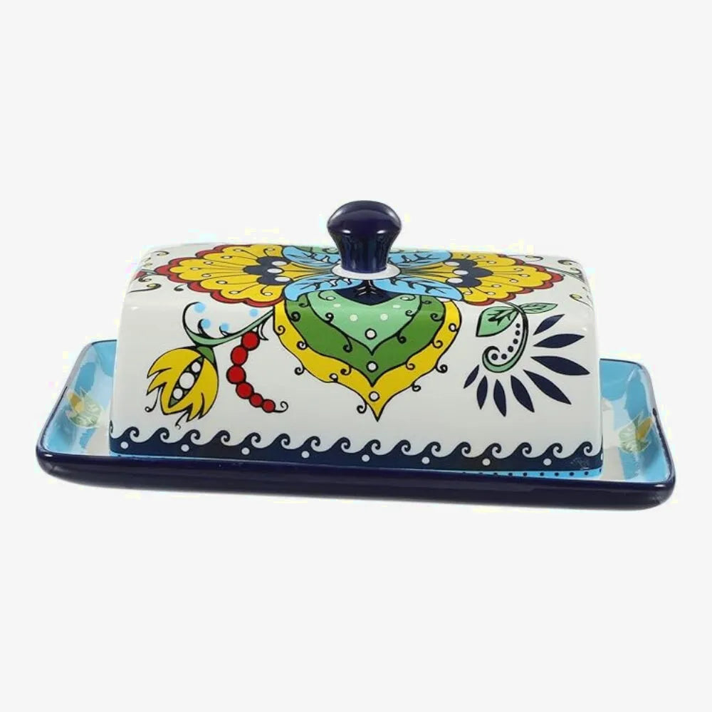 Sublimez votre table avec ce beurrier en céramique aux motifs floraux raffinés.